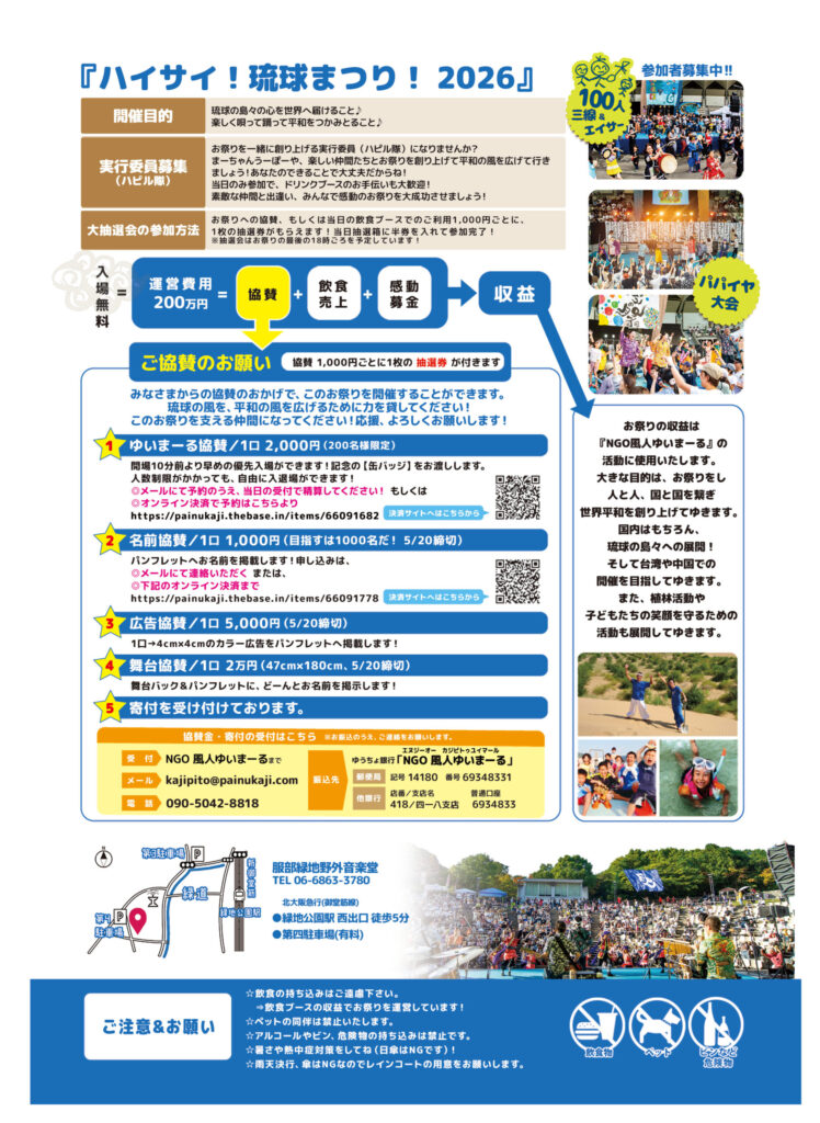 琉球の風を広げ、高槻を盛り上げるために力を貸してください!